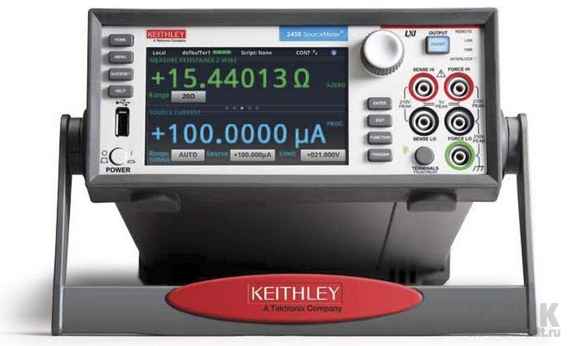 Прибор Keithley 2450 представляет собой гибкий четырехквадрантный источник тока и напряжения в сочетании с прецизионными вольтметрами и амперметрами. Этот представитель четвертого поколения источников-измерителей (SMU) Keithley предлагает превосходную точность, разрешение и надежность. Графический сенсорный экран и простая структура меню модели Keithley 2450 обеспечивают простоту настройки и эксплуатации этого калибратора-мультиметра.