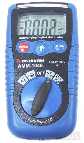 • Мультиметр, ЖКИ 4000 единиц. Постоянное напр. 600 В (±0,5%); переменное напряжение 600 В (±1,2%); постоянный ток 200 мА (±2,0%); переменный ток 200 мА (±2,5%); сопротивление 40 МОм (±0,8%); ёмкость 100 мФ (±3,0%); частота 100 кГц (±0,8%); тест диодов; прозвонка. Бесконтактный датчик напряжения. Автоотключение, фонарик. Автовыбор диапазонов. Питание 3В (2 ААА). Безопасное исполнение. Компактные размеры 120х55х40 мм, масса 145 г.