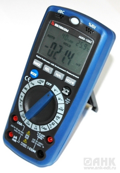 Комбинированный мультиметр "6 в 1" АММ-1062 сочетает в себе функции измерения как электрических так и физических величин: температуры, влажности, уровня шума и освещённости.