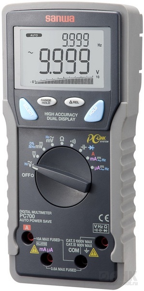 • Разрядность шкалы мультиметра Sanwa PC700: 9999 отсчетов для ACV, DCV, Hz; 6000 отсчетов для mV, μA, mA, A, Ω и емкости