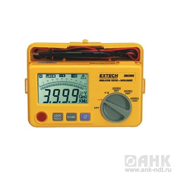 Тестер изоляции + регистратор данных Extech 380366 с автоматическим переключением измерений изоляции до 4000MОм. С испытательным напряжением 250/500/1000В и тестовым током 1мА. Измерение переменного тока до 600В. Индикатор размыкания цепи, превышения диапазона и индикатор уровня заряда батареи.