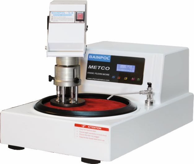 Полуавтоматический настольный шлифовально-полировальный станок Chennai Metco Bainpol SA с сенсорными кнопками управления.Дает возможность работы с тремя образцами одновременно. Высококачественный мотор обеспечивает мягкое изменение скорости вращения