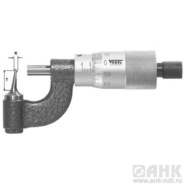 Микрометр Vogel для измерения толщин труб диапазон от 0-15х0,01 мм, с неподвижным контактом, предназначен для высокоточного определения линейных размеров. Измерение производится абсолютным или относительным контактным способом, при этом основным преимуществом инструмента является низкая погрешность, которая колеблется в промежутке значений от 2 до 50 мкм и зависит от класса точности микрометра, а также от измеряемого диапазона. В качестве преобразовательного механизма выступает так называемая микропара – винт и гайка.