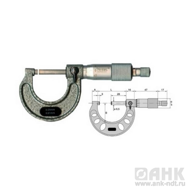 Для того чтобы вычислить размеры детали, ее необходимо зажать между измерительными плоскостями инструмента. Как правило, шаг винта составляет 0,5 – 1 мм, а на барабане нанесены от 50 до 100 делений для того, чтобы можно было получить отсчет в 0,01 мм. Это наиболее распространенный тип приборов. В нашем каталоге вы можете выбрать микрометр и с другими величинами отсчета (к примеру, 0,0001, 0,002 или 0,005 мм).