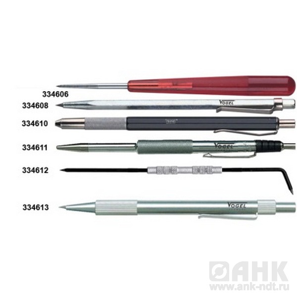 Чертилки Vogel с твердосплавными иглами, используются практически во всех отраслях промышленности, в любительских мастерских, автосалонах для нанесения разметки (рисок) на поверхность металлических заготовок и изделий. Иногда в качестве вспомогательных приспособлений используются угольники, линейки, шаблоны. Изготовлены их высококачественных материалов, устойчивых к воздействиям неблагоприятных факторов (к примеру, тепла, химических веществ). Обычно выбор типа чертилки зависит от материала, на который будет наноситься разметка: стальные выбираются для грубых деталей и заготовок, прошедших предварительную обработку; для работы с отшлифованной поверхностью уже готовых деталей рекомендуется использовать чертилки из мягких материалов, например, латуни. Не стоит пренебрегать остротой заточки инструмента: разметочная линия будет тоньше и, соответственно, точнее, если чертилка будет хорошо заточена.