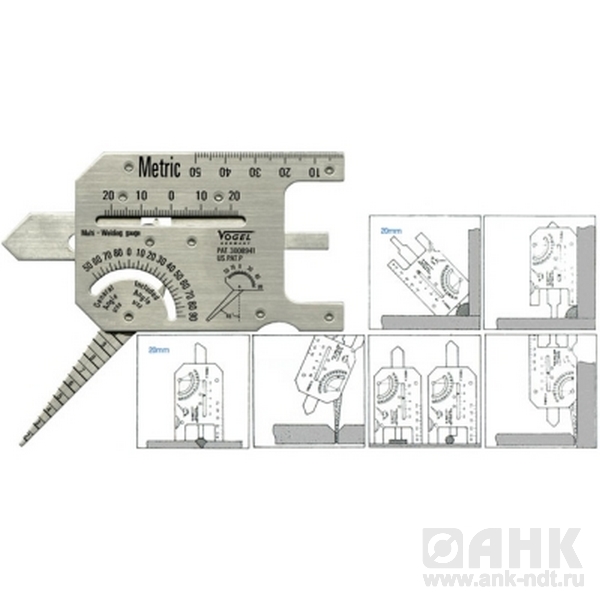 Шаблон Vogel универсальный с регулируемыми углами, диапазон измерения град  50-0-90 мм/дюйм, высота швов 20-0-20 мм, шаблоны производятся в наборах и предназначаются для измерения различных величин: