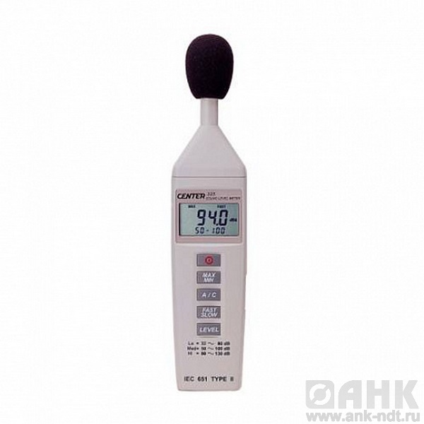 Center 325 - это компактный прибор для измерения уровня шума с нижним частотным пределом 31,5 Гц и верхним 8 кГц. Измерения производятся с разрешением в 0,1 дБ в трёх интервалах: нижнем (30-80 дБ), среднем (50-100 дБ) и высшем (80-130 дБ), при этом динамический диапазон измерения составляет 50 дБ. Данные технические параметры позволяют использовать прибор в качестве профессионального инструмента для санитарного контроля: например, старт реактивного самолета сопровождается акустической волной с уровнем в 120 дБ.