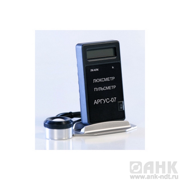 В люксметре-пульсметре Аргус-07 в измерительной головке установлен первичный преобразователь излучения – полупроводниковый кремниевый фотодиод с системой светофильтров, формирующих спектральную чувствительность, соответствующую «кривой видности». Показания индицируются в единицах люкс или килолюкс (1000 люкс), коэффициент пульсации индицируется в единицах процентов.