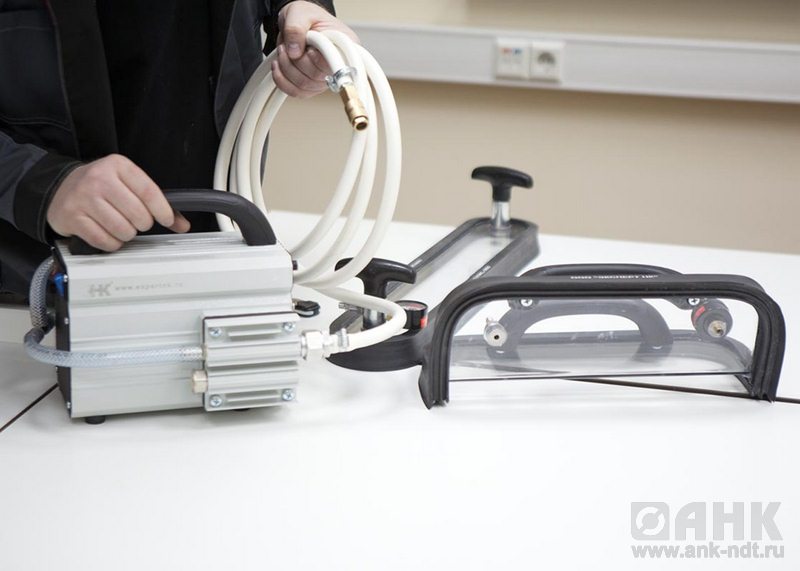 - Установка вакуумной рамки на контролируемую поверхность и создание между ними вакуума.