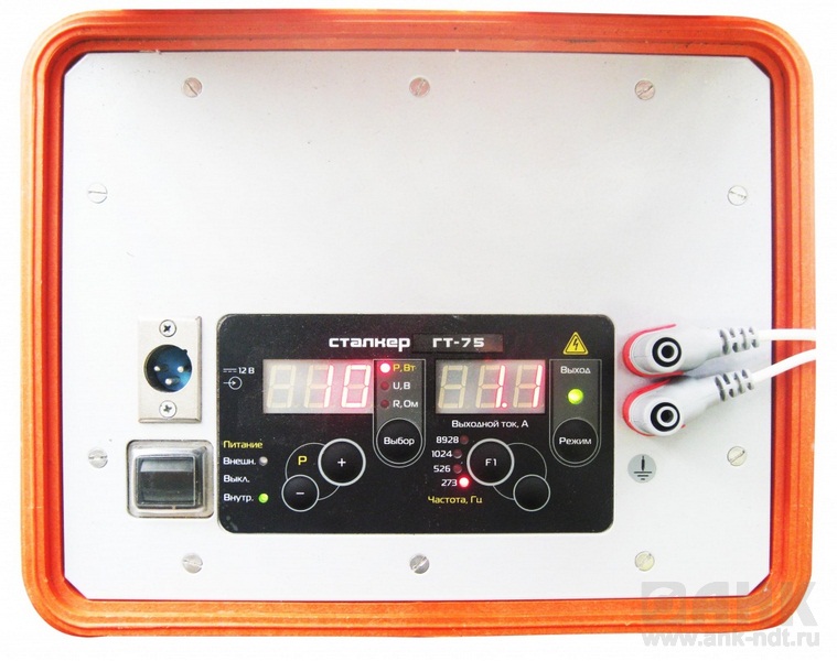 • Максимальная выходная мощность 75 Вт. Ступенчатая регулировка мощности. Синусоидальная форма выходного сигнала обеспечивает меньший уровень наведенных помех в соседние коммуникации. Индикация величины выходного тока, напряжения, мощности, сопротивления нагрузки позволяет судить о качестве подключения к трассе, т.е. оценить возможную дальность трассировки линий. Два режима работы - непрерывная и импульсная генерация. Автоматическое согласование генератора с нагрузкой. Питание от встроенного аккумулятора (6 В 12 А/ч -2 шт.) с возможностью подключения внешнего источника постоянного тока. Индикация степени разряда аккумуляторов. Встроенное зарядное устройство. Защита встроенного аккумулятора от избыточного разряда. Влагозащищенный, ударопрочный корпус (IP 44).