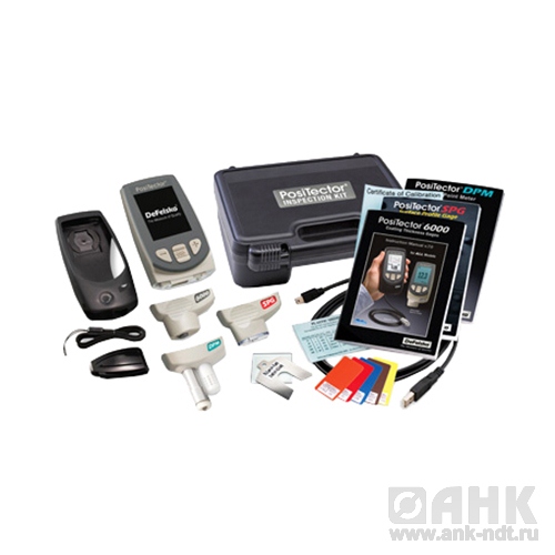 Инспекционный набор PosiTector Kit (KITF1) содержит стандартный (1) прибор PosiTector, датчик для измерения толщины покрытия PosiTector 6000 на магнитном основании, датчик для измерения профиля поверхности PosiTector SPG и датчик для контроля параметров окружающей среды PosiTector DPM.