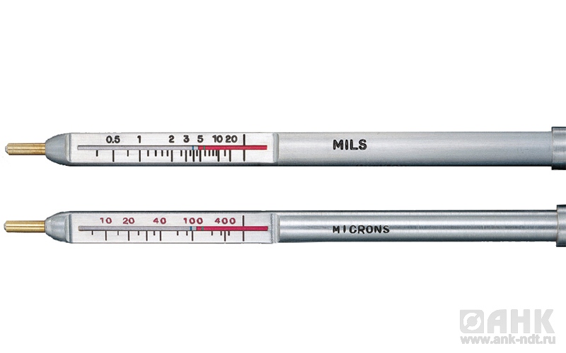 Магнитный толщиномер PosiPen работает эффективнее вместе с щупом. Он маленький, но достаточно чувствительный. Представляет собой сверхмощный природный магнит. Хорошо фиксируется на поверхности множества различных материалов и дает возможность измерять труднодоступные участки. Может быть прикреплен на очень маленькие детали, а также на выступы и во впадинах конструкций. Существуют различные модели у данного прибора, что весьма примечательно, так как это расширяет возможности специалиста. Первая «А» модель - нужна для контроля характеристики на поверхностях с нормальной температурой. Вторая - это «В», предназначенная для диагностики на объекте, имеющем очень низкую или высокую температуру: от -100 до +230 °С. И последняя «С» – предназначена для сравнения феррита (это разнообразные химические соединения оксида железа). Диапазон измерений варьируется в пределах: от 5 до 500 мкм с точностью до ±10% (2,5 мкм). Стоит отметить, что такой аппарат имеет две шкалы с разными величинами измерений.