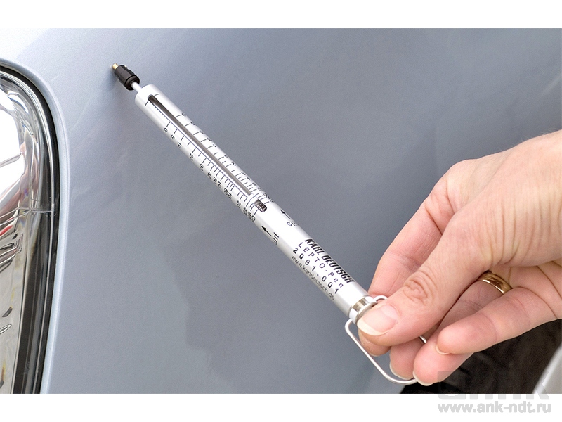 Измеряемая поверхность должна быть очищена от пыли, масла и других загрязнений. Поместите LEPTO-Pen перпендикулярно поверхности, чтобы магнит с ней соединился. Затем медленно потяните LEPTO-Pen перпендикулярно поверхности и следите за показаниями на шкале. Показания шкалы прямо перед моментом соскока магнита соответствует толщине покрытия.