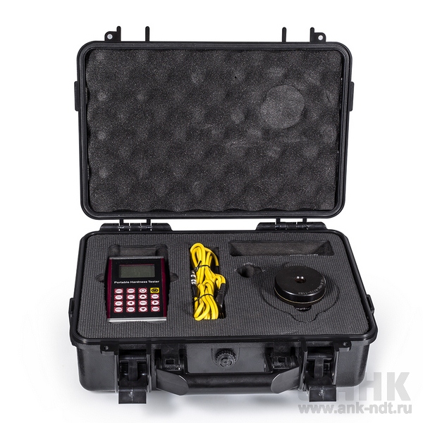электронный блок, ударное устройство типа D, USB кабель, инструкция по эксплуатации, малое опорное кольцо, чистящая щётка, образцовая мера твёрдости, сертификат.