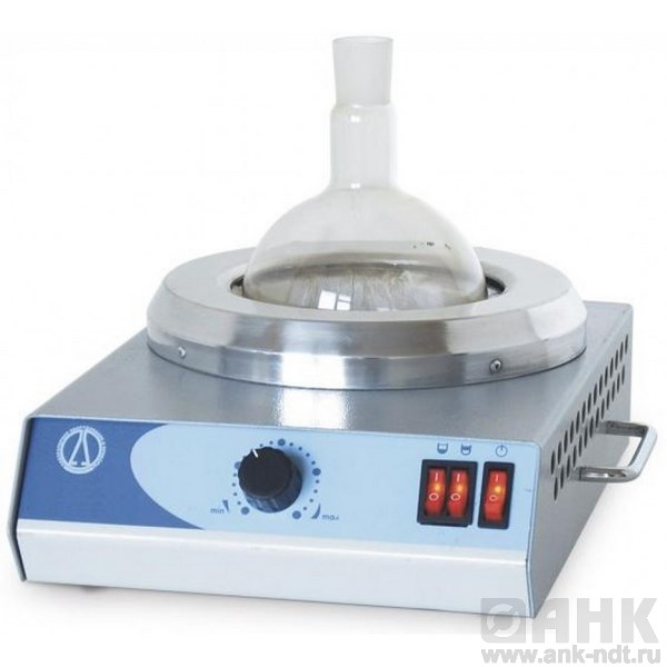 • Форма нагревательной камеры, удобная для работы с круглодонными колбами соответствующего объема и повторяющая форму их поверхности, расположена в кожухе, термоизолированном от внешнего корпуса.