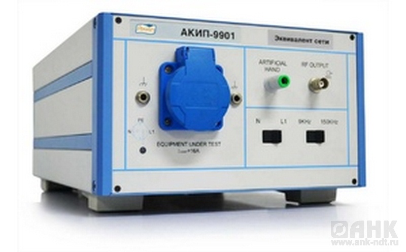 Компактный 2-х проводный V обр. эквивалент сети для измерения помех сети питания, вызванных потребителем при анализе ЭМС. Предназначен для измерения напряжения индустриальных радиопомех вызванных тестируемым устройством. Диапазон рабочих частот: 9 кГц … 30 МГц, максимальный рабочий ток: 16 А. Максимальное напряжение электропитания: ~ 240 В 50/60 Гц (+/- 10 %); 50 В пост. Вх. сопротивление 50 Ом. Встроенный аттенюатор (фикс.): 10 дБ. Фильтр ВЧ (переключаемый): 150 кГц. ВЧ выход: разъем BNC (50 Ом). Моноблочный конструктив, евро розетка (3 конт: N, L1, PE). Функция «Эквивалент руки» (artificial hand). Соответствие: EN61326 (ЭМС), EN61010. Габариты: 338x237x133 мм, масса: 4,2 кг.