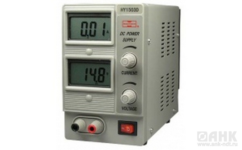 Лабораторный блок питания HY1503D обеспечивает питание электронных устройств и схем постоянным напряжением в диапазоне от 0 до 15 Вольт и током в диапазоне от 0 до 3 Ампер.