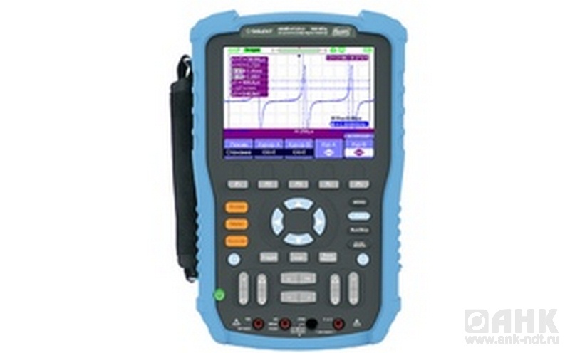 Портативный осциллограф-мультиметр, 2 входа // Осциллограф – полоса 60 МГц; дискретизация 1 ГГц (эквив. 50 ГГц); 2 мВ…100 В/дел (макс. 300 В); 5 нс…50 с/дел; внутр. синхронизация; автоизмерения (32 параметра); макс. память 2 МБ; сохранение 10 осциллограмм/20 профилей; Регистратор TrendPlot: осциллограф - 800кБ, свыше 18 часов, мультиметр - 1,2 МБ, свыше 33 часов; регистратор реального времени на медленных развертках (от 100 мс/дел) - 7 МБ; TFT LCD дисплей (14,5 см, 320 × 234 точек). Мультиметр – 4 разряда (6000); базовая погрешность DCV ± 1 %; В, А, Ом, мкФ, тест p-n. Универсальное питание (Li-ion, 5 ч); интерфейсы USB 2.0; габариты 259 × 163 × 53 мм; масса 2,5 кг