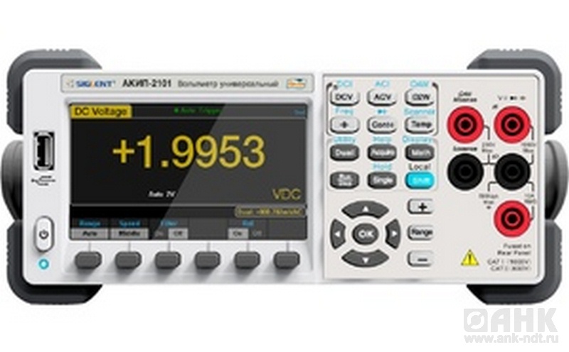 • Вольтметр универсальный цифровой. Базовая погрешность 0,015%; постоянное напряжение 200 мВ/ 2/ 20/ 200/ 1000 В; переменное напряжение (AC+DC) 200 мВ/ 2/ 20/ 200/ 750 В (до 100 кГц); постоянный ток 200 мкА/ 2/ 20/ 200 мА/ 2/ 10 А;