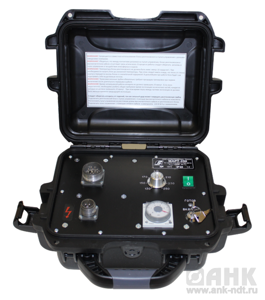 Переносной рентгенаппарат МАРТ-250 применяется для контроля качества сварных швов мталлических конструкций и при строительстве нефтепровода, газопровода. МАРТ 250 - это устройство для дефектоскопии не только тонкостенных деталей, но и для толстостенных. Большой диапазон применения аппарата связан с возможностью измениения рабочего напряжения на трубке в хороших пределах.