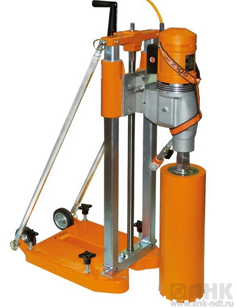 Установка алмазного бурения Goelz КВ-130 рассчитана на бурение бетона, армированного бетона, природного и синтетического камня, асфальта, алмазными колонковыми бурами с подачей воды для отверстий диаметром от 20 до 250 мм.
