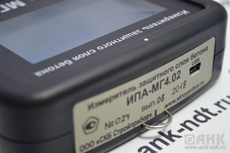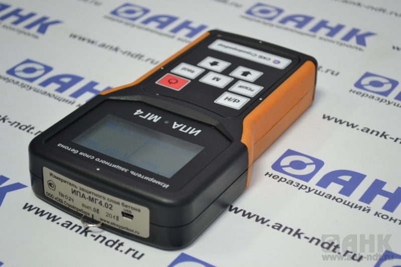 Прибор ИПА-МГ4.02 дополнительно снабжен функцией определения параметров армирования при неизвестных диаметре и толщине защитного слоя бетона, имеет подсветку дисплея, часы реального времени, индикацию расположения арматуры, индикатор уровня заряда аккумуляторной батареи, передачи измеренных параметров армирования из памяти прибора в ПК через USB порт.