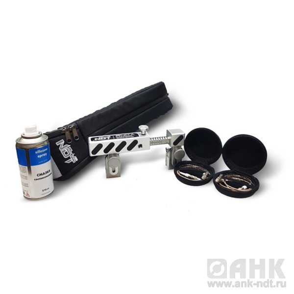 RUKA ручное устройство контроля арматуры - предназначено для ручного ультразвукового контроля стыковых однорядных соединений стержней арматуры диаметром от 20 до 40 мм, выполненных ванными и многослойными способами сварки в инвентарных формах, на стальных скобах-накладках и подкладках или без формующих и вспомогательных элементов. Устройство применяется в составе с ультразвуковым высокочастотным дефектоскопом общего назначения, позволяющим работать по раздельной схеме подключения ультразвуковых пьезоэлектрических преобразователей (ПЭП).