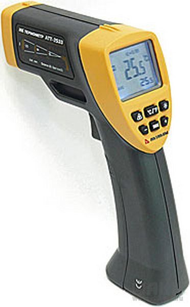 Инфракрасный термометр предназначен для измерения температуры поверхностей пирометрическим способом. Пирометр позволяет отображать на дисплее 2 температуры, сохранять в памяти максимальное, минимальное и среднее значение.