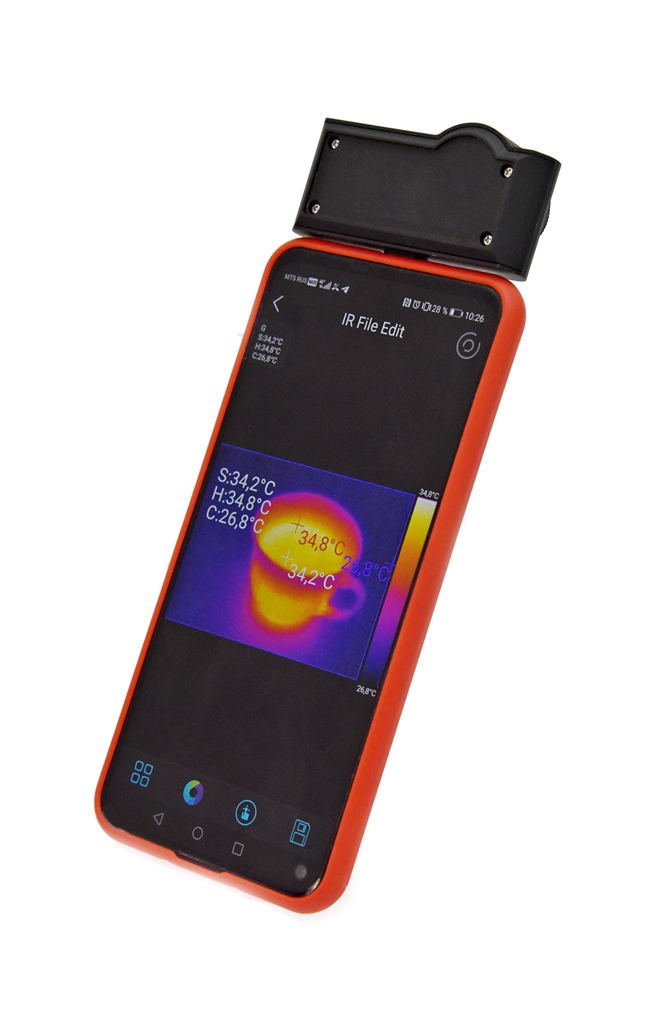 Диапазон температуры объекта от -10°С до 330°С; ИК-разрешение 206х156; Поле обзора (FOV) 26,8х35,4; Тепловизионная съёмка и запись фото и видео; Отображение данных о температуре в режиме реального времени на смартфоне; ручная фокусировка; Анализ точки/линии/области в режиме реального времени; Экспорт отчета в формате PDF; Можно поделиться тепловым изображением; Предварительный просмотр в режиме реального времени результатов 9 цветовых палитр; Габариты 68х33х28 мм.