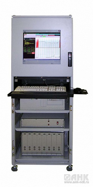 Установка представляет собой универсальный многоканальный дефектоскоп/толщиномер с независимыми параллельными каналами, построенный по принципу модульной конструкции. Каждый канал является отдельным модулем с собственным генератором, усилителем, ВРЧ, автоматической сигнализацией дефектов (АСД) и двумя стробами. Конструктив установки состоит из многоканального дефектоскопа, блока питания и компьютера в специальном исполнении, интегрированных в промышленную стойку Schroff Proline 19" с классом защиты IP55. Программное обеспечение обеспечивает сохранение всех результатов контроля в виде базы данных протоколов контроля и вывод информации на экран в виде А, В и С-разверток. Как вариант возможна реализация комбинированных методов контроля с совместным использованием каналов как ультразвукового, так и вихретокового контроля в одной установке.