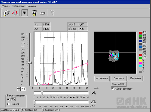 На управляющей PC, при помощи прикладного ПО (поставляемого в комплекте) оператор формирует необходимые параметры контроля и производит настройку акустического тракта: по частоте, амплитуде и форме зондирующего сигнала.