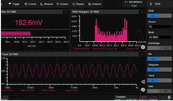 Особенности Высокая скорость обновления экрана до 500.000 осц./сек. Режим сегментированной памяти. Режим HISTORY. Интерполяция — Sin X/х, линейная. Автоматические (до 38-и параметров) и курсорные измерения. Математические функции, БФП. Режим «Поисковая машина/ Search» для поиска событий по условиям заданным пользователем. Cинхронизация и декодирование сигналов, стандартно, I2C, SPI, UART/RS232, CAN, LIN, опционально, I2S, MIL-1553, FlexRay. Опция — логический анализатор 16 каналов. Опция — функциональный генератор до 25 МГц.