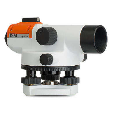 Качественная оптика прибора обеспечивает прямое изображение с 24-кратным увеличением, что гарантирует комфорт оператора и минимизирует ошибку измерения. Средняя квадратическая ошибка RGK C-24 составляет 2 мм на километр двойного хода – такой точности достаточно для эффективного решения большинства измерительных задач. Встроенный воздушный компенсатор устраняет ошибку при горизонтировке прибора.