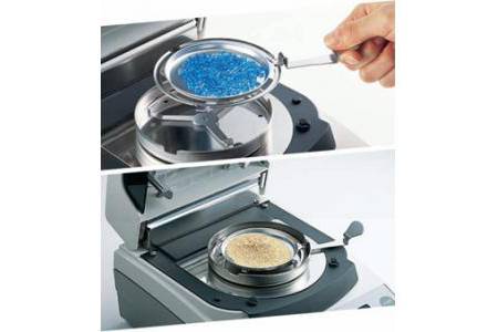 В анализаторе влажности MS-70 реализован принцип термогравиметрического анализа, при котором происходит высушивание образца с помощью галогеновой лампы и определение содержания влаги (в %), а также других значений, вычисляемых на основе разности между влажным и сухим весом.