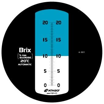 Положение границы света и тени измеряется рефрактометром и зависит от показателя преломления измеряемого вещества. Результаты измерений считываются визуально по шкале массовой доли сахарозы в водных растворах % Brix в световом поле зрительной трубы.
