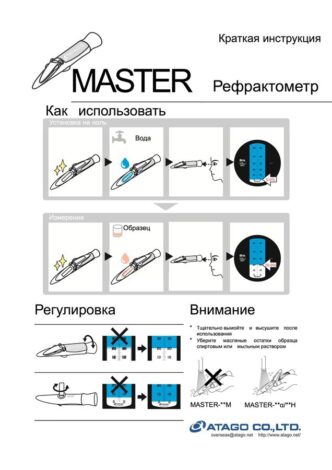 Модели Master серии T и Master-20alpha представляют собой ручные оптические рефрактометры с функцией автоматической температурной компенсации, предназначенные для измерений показателя преломления жидкостей.